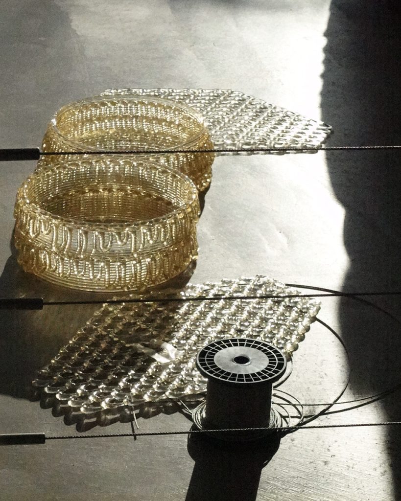 クリエイターに進藤篤氏を迎え、植物由来の樹脂を用いた3Dプリンティング×ワイヤーグリップシステムで構成するインスタレーションをご覧いただけます。