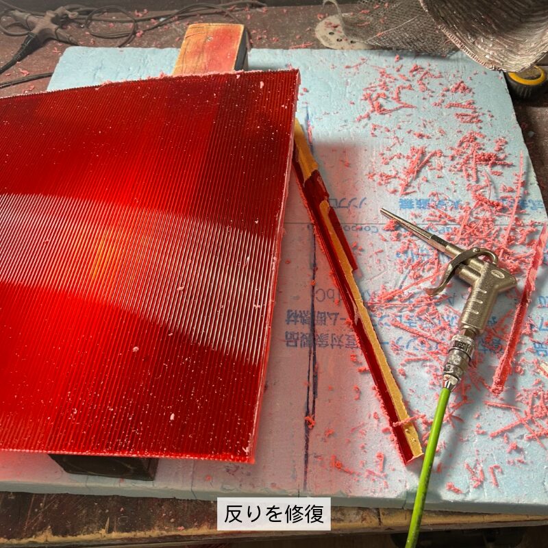 2.グラインダーで切り出し、反り修正