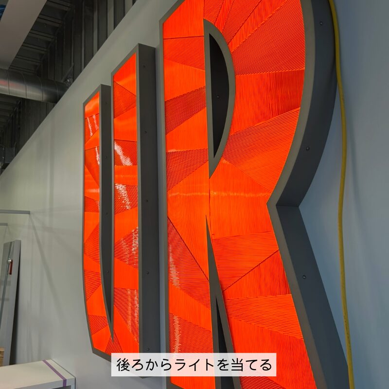光を内側から通す構造により、ブランドロゴの印象が引き立つ仕上がりに。