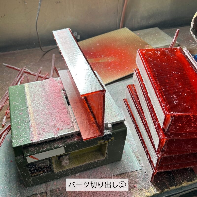 両サイドのL字型パーツを一体でプリント→切り離すことで、効率的に製作。