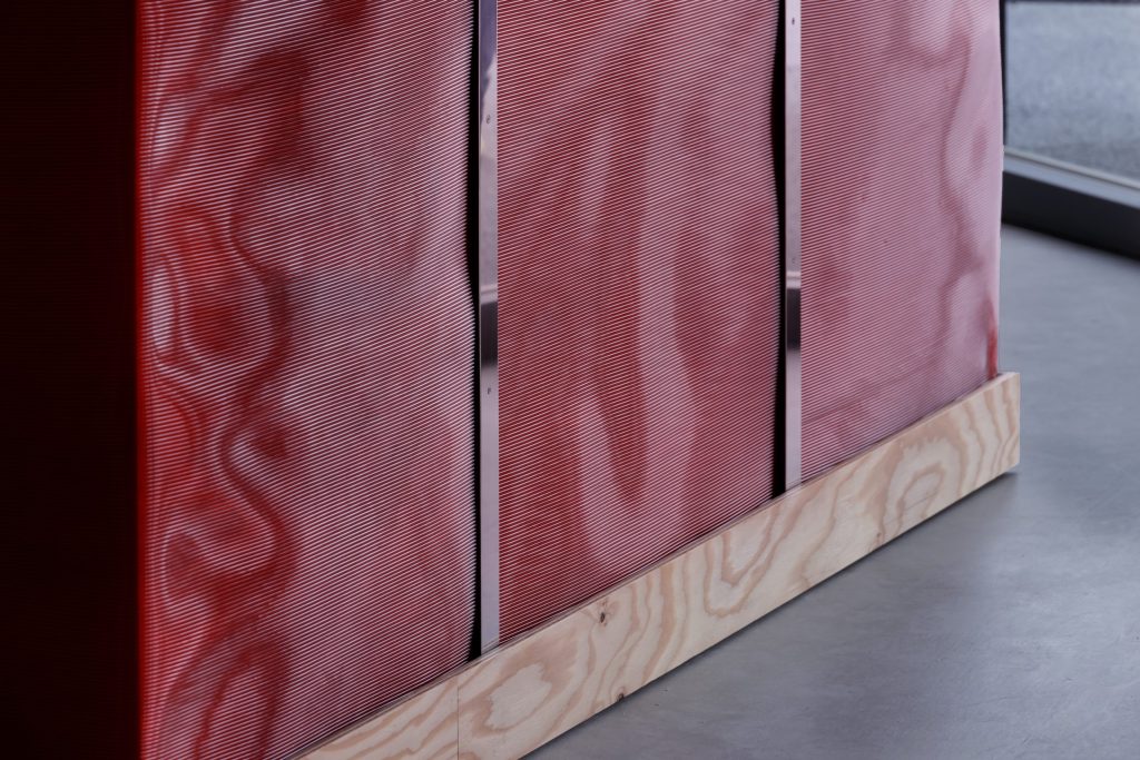 今回製作した什器は、再利用性や普遍性、異素材の組み合わせ、強度への配慮など、万博後の活用も見据えた実用性重視のデザインが特徴です。